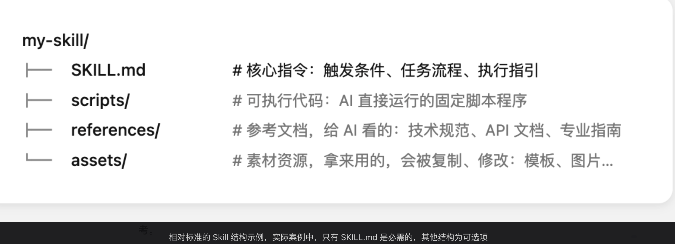 也有 Agent Skill 规范文档将它们统称为「Resource」。相对来讲,Level 3 结构要求没那么严谨。